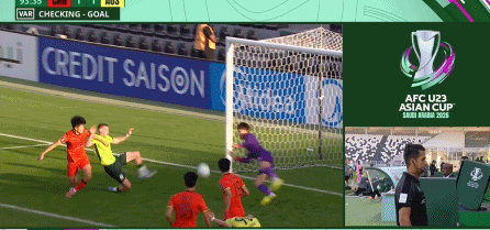 补时第2分钟,阿拉吉奇右路将球传入禁区,替补出场的博瓦利纳球门区内欲铲射,后用手将球碰入球门。经VAR介入,印度尼西亚籍主裁判卡蒂里判罚博瓦利纳手球在先,进球无效。